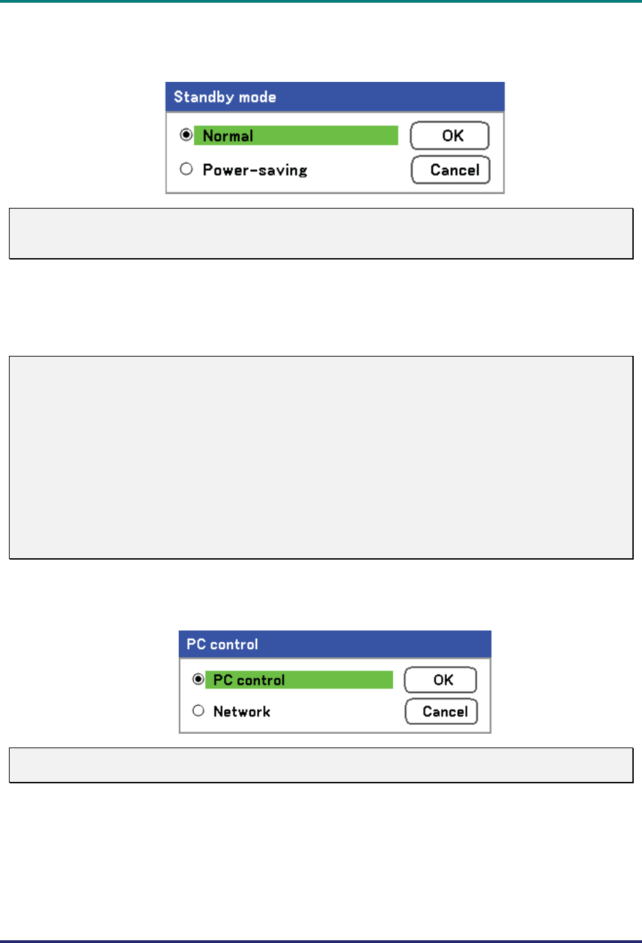 mode. For PC control and Network mode of the projector it is recommended to leave the projector in